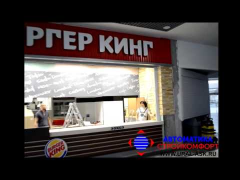 Рулонные ворота Российского производства были установлены в ТЦ "Алмаз" ресторан "Burger King", г. Челябинск. Автоматические рулонные ворота имеют размер 7500хh3000 мм., и устанавливались на уровне 1000мм. от пола внутри проема. Автоматика Simu итальянского производства, применяемая к данным воротам - надежные внутривальные электроприводы для автоматизации тяжелых роллетных систем с массой полотна более 200 кг.
